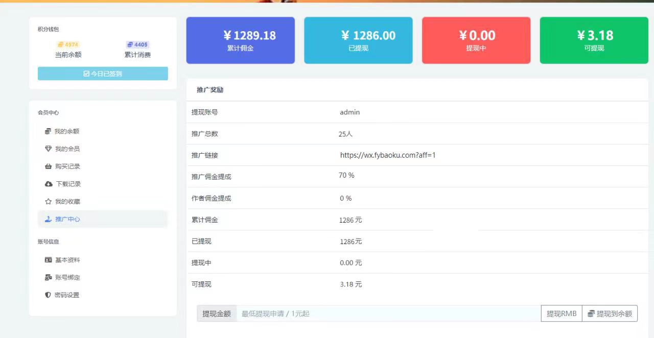 3.2简单操作进入会员中心,复制你的专属推广码,发布出去,只要是通过你的推广链接注册的用户消费后,你可获得对应会员等级的佣金