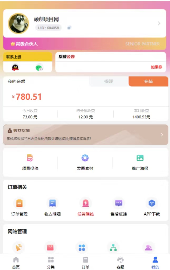 终身会员联系站长开通手机站点,内有卡密专属通道,我的销售价格是9.9,开通后你的成本更低,自用更划算,可后台自己可以调整销售价格,比如你可以改成29.9或者更高,你把你的手机分站系统分享出去,内带自动生成海报等功能,有人需要购买了的话,利润自己到你的后台,随时体现。自用赚钱两不误。