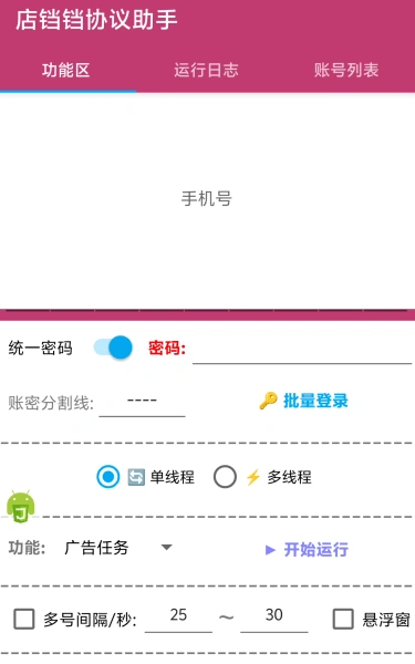- 账号密码登陆,支持批量账号同时挂机,登陆后点开始运行即可(小白协议软件无脑操作)