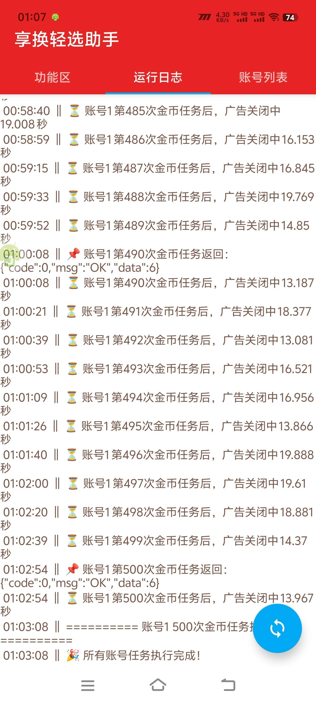 - 全自动刷金币,无需手动刷,支持无限账号同时运行刷金币,