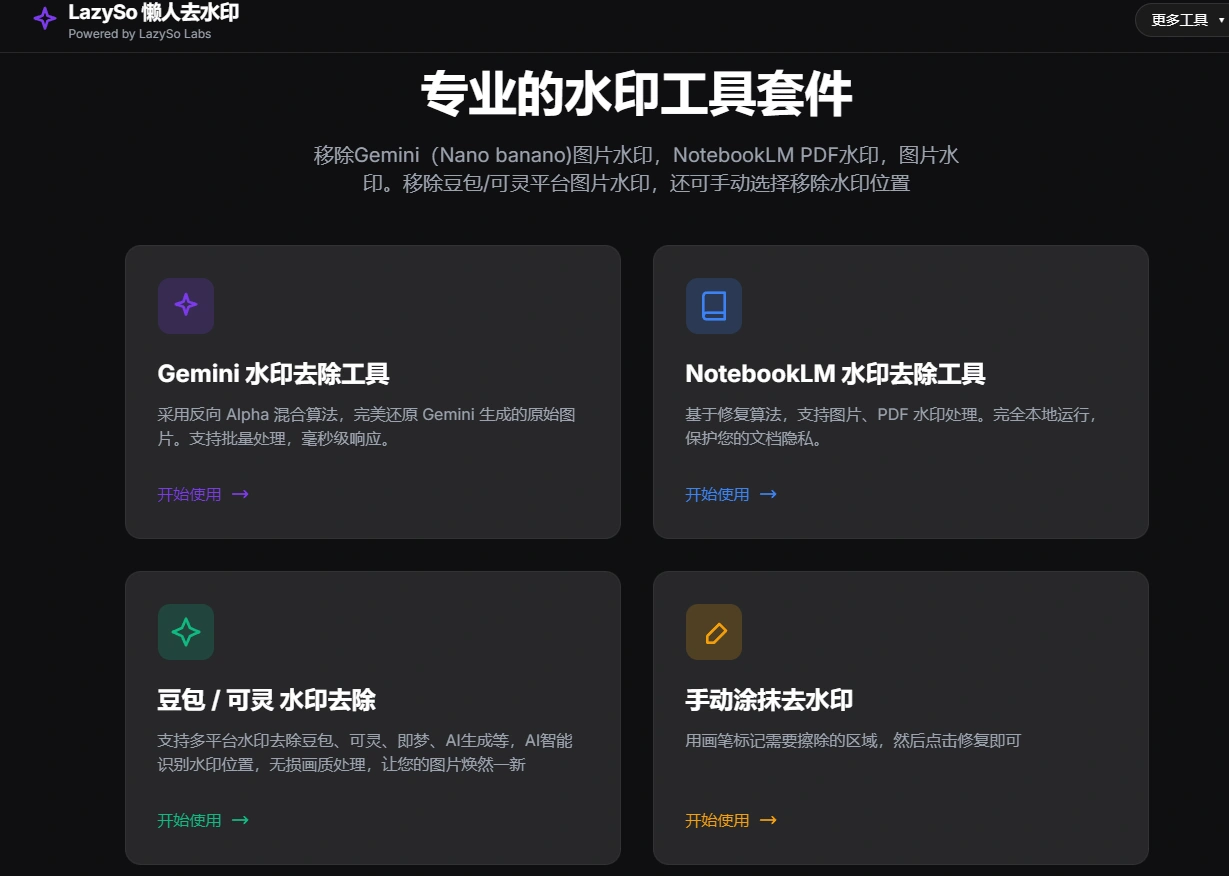 - 专业的水印工具套件,其功能十分强大,能移除多种平台图片及 PDF 文档上的水印