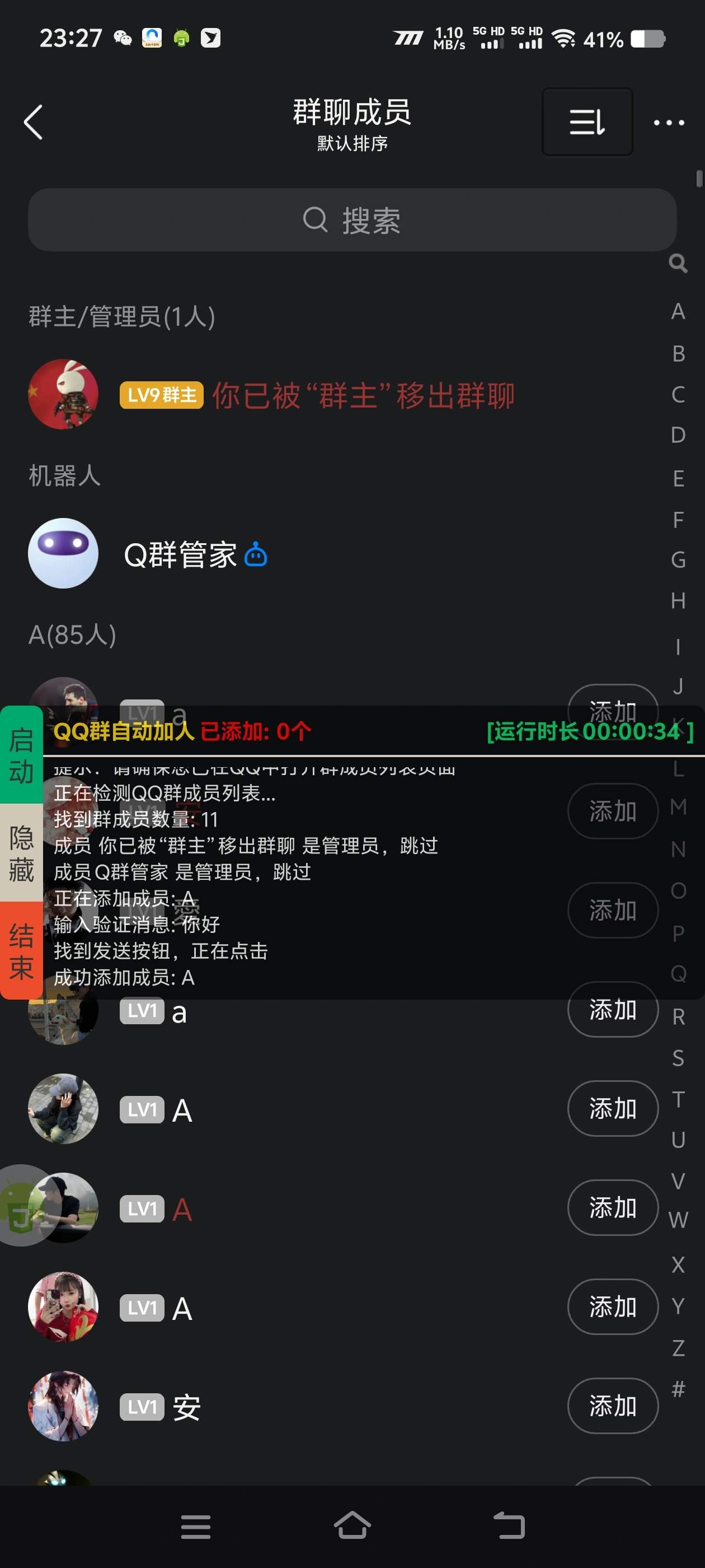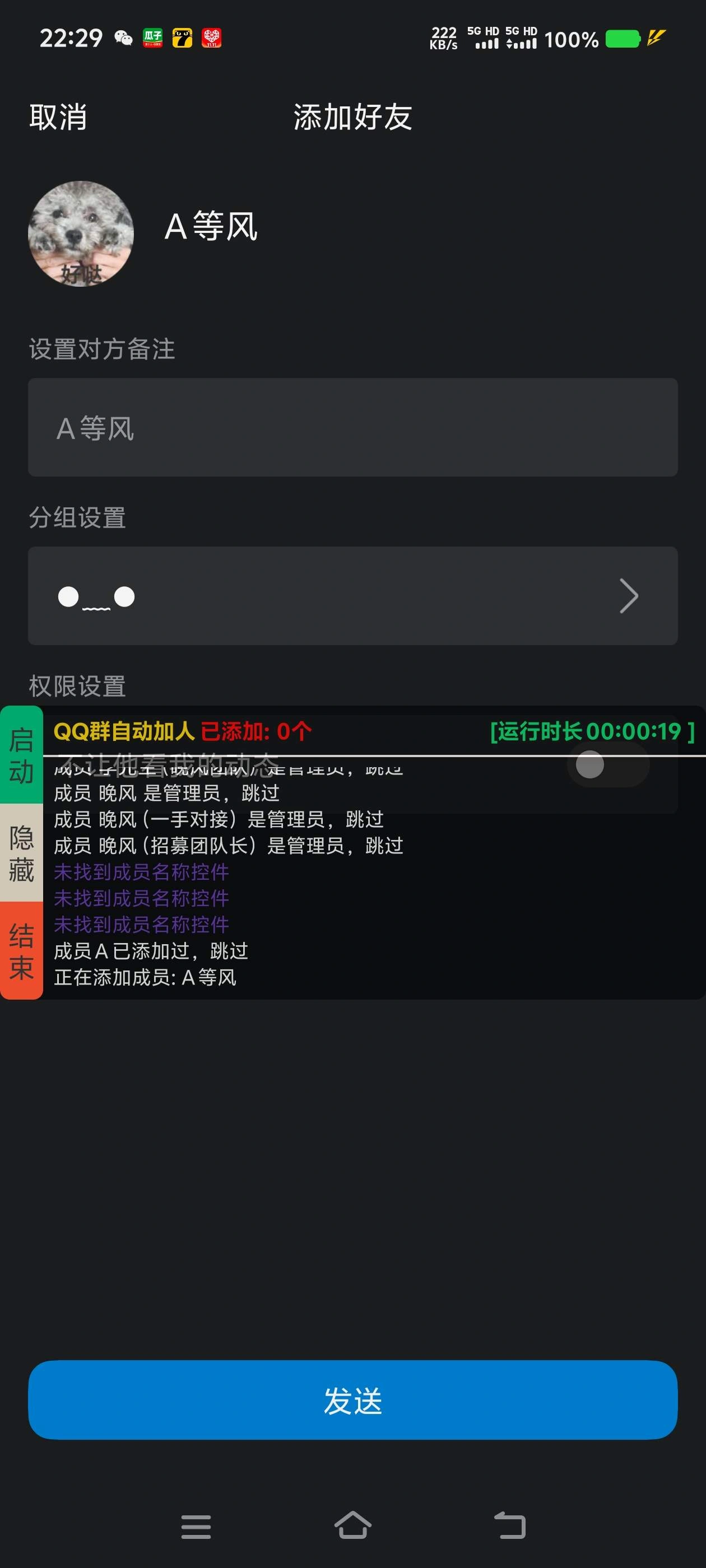 - 全自动加QQ群内好友-自动过滤群主和管理员