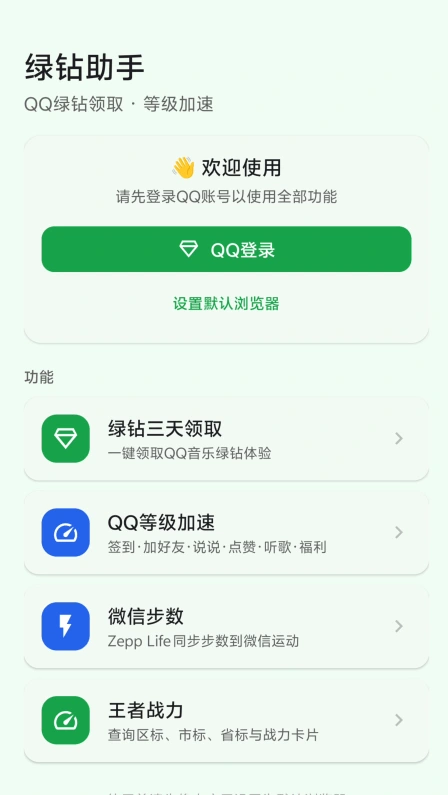 - 功能一:每个月领取3天QQ豪华绿钻