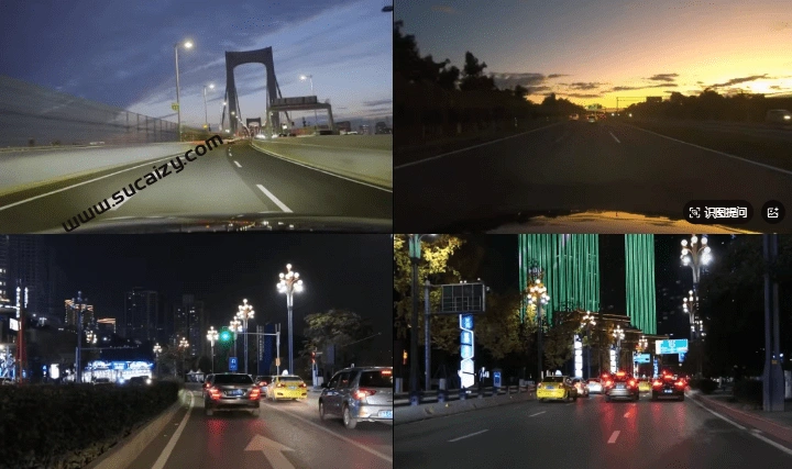 - 开车第一视角实拍视频,涵盖白天、傍晚、夜景多时段行车画面,真实驾驶视角搭配沿途绝美风景